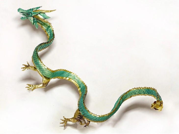 これまでたくさんの作品を作りましたが、ソンさんが最も気に入っているのはファンタジー冒険映画「ロード・オブ・ザ・リング」をモチーフにした「ヨーロッパの竜」です。1メートル×1メートルの紙で折られたこの作品を作るため、約2か月間かかってデザインと折り方を考えましたが、出来上がるまではさらに1か月がかかりました。この作品は現在、スペインのザラゴザ博物館に展示されています。「ヨーロッパの竜」のほか、ケンタウルスや鳳凰、森の神など神話の人物や怪物がおおく折られ、折り紙の好きな人や折り紙アーチストらから好評を得ています。しかし、ソンさんにとって最大の成功は和紙の代わりに、「ゾー」というベトナムの伝統的な紙で折るということです。ジンチョウゲ科のゾーという木の皮から作られるこの紙は、かつては朝廷の公文書や科挙試験の答案用紙などに用いられたほか、伝統版画の紙としても親しまれていました。ソンさんは次のように語りました。