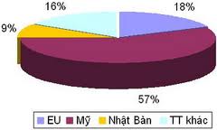 EU、アメリカ、日本など向けの繊維製品輸出の割合