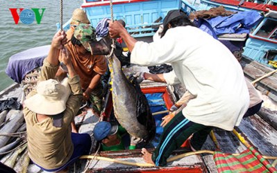 マグロはベトナムの主力の輸出品の一つであり、輸入国の好評を博しています。しかし、マグロの漁獲は主に漁民の経験に依拠しており、設備投資が進んでいません。先頃、中部沿海各省が打ち出した海洋経済の開発を進めるという方針を実現して、ビンディン省、フーイエン省、カインホア省の漁民たちは生産の再編を行なった上で、日本のマグロ漁獲技術の導入に力を入れ、マグロ輸出の発展に道を切り開きました。
