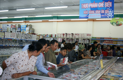 年末の数ヶ月に、必需品をはじめ、多くの品目の価格が値上がりする傾向があります。物価高騰に伴い、輸出の減速、購買力の低下、不良在庫の増加などの問題が浮上し、CPI消費者物価指数の増加を招くと懸念されています。9月のCPIは8月と比べ、2・2%増加し、年初以来の最高上昇率となっています。9月末、グエン・タン・ズン首相は必要なサービスの価格の引き上げ期限を延期することを求めましたが、医療や教育などの分野における消費者物価指数はかなりの上昇率を見せました。こうした事情を踏まえ、ズン首相はインフレ抑制、マクロ経済の安定化という目標の達成に向け、年末までの数ヶ月における物価管理、調整、安定化に関する指示を与えました。6月上旬から政府は36の省と市とのサテライト会議を行い、物価安定化の実施状況を総括するとともに、年末までの物価安定化措置について協議しました。これまで、国内各地には6400ヶ所あまりの物価安定化を目的とする販売店が設立されたほか、農村部、僻地、工業団地などにも同様の販売店が設けられました。これらの販売店における品目の価格は、市場で販売されている同様の製品の価格を5%ないし10%下回っています。商工省のホー・キム・トア(Ho Kim Thoa)副大臣は次のように語りました。(テープ)