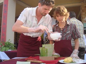 ベトナムの伝統料理を始めに作った韓国人留学生リ・ユ・クンさんは一つのチマキを作るのに1時間以上もかかりましたが、自分が作ったものに満足していました。また、スイス人ボランティアの青年イザベン・ブルンさんは自分の手で作ったチマキはみかけはよくないけれども、国際ボランティア青年たちの温かい心を示すものであると述べ、次のように語りました