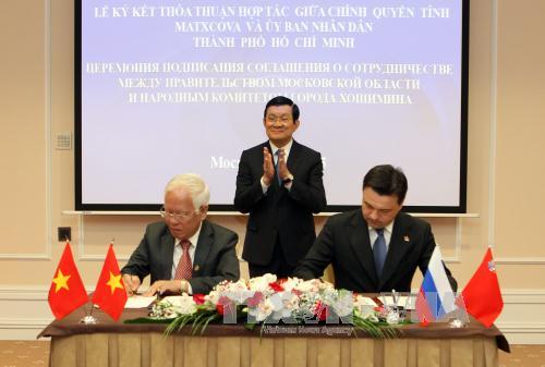 サン国家主席がHCM市とモスクワの協力合意書の調印式に立ち会う(写真:VGP)