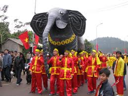 ベトナムには「不死の英雄」と思われる4人の神様がいます、その中のゾン( Giong)という英雄はハノイ郊外にあるザーラム(Gia Lam)県、フードン(Phu Dong)村に祀られています。毎年、旧暦の4月6日から一週間この村で、ゾン神様の恩に報いる祭りが行われ、北部デルタ地域の大きな祭りと言われています。この祭りの開催期間中の3日間、祖母神社への旗あげ行列や精進料理を捧げる儀式が行われます。フードン村の人々の言い伝えによりますと、旧暦の4月9日はゾン神様が敵に勝った日でした。これにより、この日に、祖母神社とトゥオン(Thuong)神社でゾン神様と敵による戦いの様子を再現する祭りが行われます。
