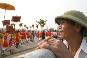 現在、ベトナム全国各地で、フン王を偲ぶ神社はおよし1400箇所あります。それと同時に、毎年、百件の祭り行われ、フン王の恩に報いる目的とされています。特に、命日が近づきますと、全国の人々はフート省にあるフン王を偲ぶ神社に集まり、線香をあげ、平穏や多幸をお祈りします。こてはベトナム民族の「同国の人々は愛し合おう」という美しい伝統文化を示すものです。フン王時代から始まった伝統歌唱ハットソァンは昨年ユネスコにより無形文化遺産として認定されました。ハットソァンは共同体的文化活動で、住民たちの精神的生活を示すものです。これについてフート省の民間文化研究家グェン・フュー・ニャン(Nguyen Huu Nhan)さんは次のように語りました。
