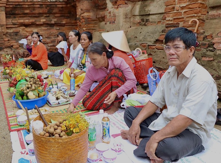 ポ ヌカイン女神の衣装を受け取る儀式はカテ祭りの始まりです。この日は、どの家庭でも、山羊肉、鶏肉、もち米を用意して伝統的料理を作り、先祖とポヌカイン女神に供養します。その翌日にカテ祭りのメイン儀式はチャム族の神様を祀る塔で開かれます。