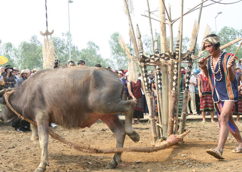 「ブラオ族は新しい村や家に入居する時、水牛を供養する儀式を行い、平安と健康、豊富、幸福を祈ります。また、耕作が順調に行われ、豊作になることを祈ります。」