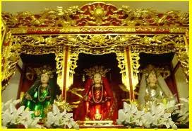 博物館には女神を祀る“聖母信仰”の習慣を紹介するコーナーもあり、天、山林、そして土と水をつかさ(司)どる女神とされる3体(さんたい)の像が並べられています。なお、女神を祀る習慣があることでわかるように、ベトナムの家庭では母親は極めて重要な役割を果たしていることが理解できるでしょう。