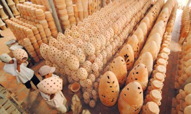 ベトナムにはおよそ4500ヶ所の職業村があります。その中でおよそ400ヶ所が一村一品のは伝統職業村で、1200万人の労働者に雇用を創出していて、手工芸品の輸出額は年平均1億ドルに達しています。これらの製品は生活と密接に結びつき、人々の文化活動の需要にも応えられています。手工芸品は日用品から子供の玩具や水上人形劇用の人形に至っています。