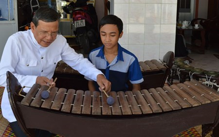 五音色音楽用の楽器を演奏するためには、心を込めていろいろと練習しなければなりません。現在、多くのお寺では、これらの教室が開かれており、多くの若者が習いにきています。ソクチャン市にあるゾイ寺で習っているラム・クェット・タンさんは次のように話しています。