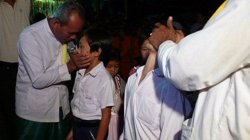 オク・オム・ボクとはクメール語で、月の神様を礼拝して豊作を祈願するという意味です。クメール族の信仰では、月の神様は天候と作物を管理するのです。オク・オム・ボク祭りで一番重要なのはお月さまを礼拝する儀式で、この儀式は旧暦の10月15日の夜に行われ、場所はお寺でやるのが一般的ですが、家で行なうこともあります。