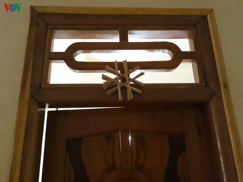 タイ族の言葉「タディエウ」は目が一つの一目(ひとつめ)を意味します。竹でできた「タディエウ」は雪の結晶のような花の形をしていて、ドアにかけたり、家の前の地面に突き刺したり、悪魔を追い払いその家族の平穏な生活を守るためのものです。ソンラ市モン村に住む祈祷師トン・ヴァン・ヒアさんは次のように話しました。