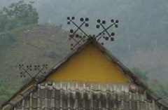 「黒タイ族の家の屋根は亀の甲羅のように見えます。彼らは亀から家の建て方を教わったと考えていることから、家は亀の甲羅にみたてているからです。また、屋根の上にカウクットという竹の棒が2本置かれます。竹の棒に彫刻された模様は社会的な階級を示しています。