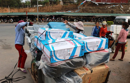 一方、ホー・ティ・タ・ゾアさんはラオスとの国境を越える食品輸出を行なっています。最初は、毎日自分でベトナム食品をラオスへ運んで販売する小規模なものでしたが、ラオスの人々の信頼を得て、販売している食品の種類と量もかなり増えています。現在は、ラオスの国境地帯の住民の間で水産物、お肉、野菜、米の提供先として知られています。ゾアさんは次のように話しています。
