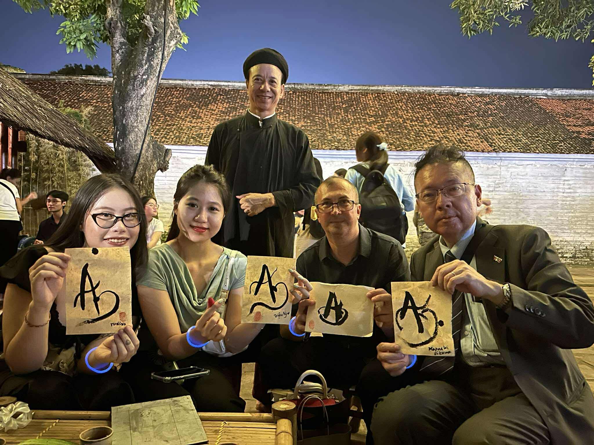 及川さんは9月22日から26日までベトナムを訪れ、最高賞授与式ならびに文化交流プログラムに参加しました。タムコックでのボート体験、古村での瓦絵付けやランタン作り、VOV日本語課での交流とショートインタビュー、文廟・国子監のナイトショー鑑賞、ハノイ市内観光など、盛りだくさんのスケジュールを通して、リスナーの皆さまとの国際交流の輪がいっそう広がりました。9月25日には、対外向け放送開始80周年記念式典に合わせて行われた授与式に出席し、各国の受賞者とともに喜びを分かち合いました。
