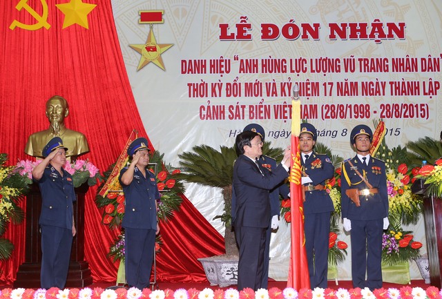 28日、ハノイで、海上警察部隊司令部は、設立17周年記念式典、及び、「人民部隊英雄」称号の授与式典を行い、チュオン・タン・サン国家主席らが出席しました。