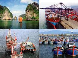 海洋経済の重要性をよく認識して、第10期ベトナム共産党中央委員会第4回総会は「2020年までのベトナム海洋発展戦略」に関する決議を打ち出し、その 中でベトナムが海の開発で豊かになり、経済社会発展を国防・安全保障の確保、環境保全と連携させ進め、海洋経済の発展にあらゆる財源を活用し、沿海地域の 経済中心地を建設し、2020年をめどに海洋経済のGDPへの貢献度は53%~55%、輸出総額の55%~60%に当り、社会問題の解決や沿海地域の住民 の生活改善に貢献する」という目標を設定しました。