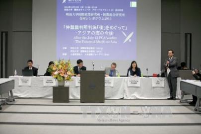 シンポジウムに参加した代表はベトナム東部海域(いわゆる南シナ海)の最近の情勢に対するオランダ・ハーグにあるPCAの裁定の意義と影響を集中的に分析した上で、この海域の航海と航行の自由は地域内諸国だけでなく、世界各国の利益につながるものであること、及び、「法の支配」の精神を強調しました。また、シンポジウムの参加者はPCA=常設仲裁裁判所の裁定は関連各国がこの海域の平和、安定、及び、航海と航行の自由に協力する基礎となるとの見解で一致しました。