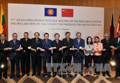 ASEANと中国の高級指導者は常にDOCの意義を高く評価しており、DOC の完全な履行とCOCの策定に向けた決意を幾度も強調してきました。2003年10月8日に、インドネシアのバリ島で、ASEAN・中国の戦略的パートナーに関するASEAN加盟諸国と中国の首脳と首相による共同宣言は「DOCの履行はASEANと中国間の安全保障の協力措置の一つである。」と強調しています。また、2010年10月ハノイで開催された第13回ASEAN・中国高級会議において、双方の高級指導者はDOCの完全な履行とCOCの策定に向けた公約を改めて強調しました。それだけでなく、DOC を十分かつ完全に履行するために、2011年に、ASEANと中国は、DOC履行のガイドラインを採択しました。これに基づき、双方は、DOC履行は関連各プロジェクトを実現させるのみならず、他の規定を十分に実施しなければならないということです。それらは、国際法、とりわけ1982年国連海洋法条約に従って、ベトナム東部海域における航行・航空の自由を尊重し、武力による威嚇と武力の行使によらず、直接関係する国による交渉と友好的な協議を通じて領土領有権を巡る紛争を平和措置解決し、平和と安定に影響を及ぼす行動を自制し、複雑化またはエスカレートさせないことを公約しました。