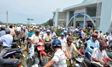 9日、中部クアンガイ省リーソン島でアンハイ漁業協会とアンビン漁業協会は中国がベトナムの排他的経済水域に掘削設備を設置する行為を抗議すると共に、漁民らに対し、ベトナムの領土保全のため、これまで漁をしていた漁場で引き続き漁獲するよう呼びかけました。