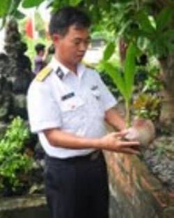 「私は2回にわたり、ナム・イェット島に駐屯しました。一回の任期は2年ですが、椰子の木6本を植えました。椰子の木が成長するまで長い時間がかかります。しかし、椰子の木はあまり水やりをする必要がありません。時々、枯葉を取ったり、塩をやったりするだけです。」