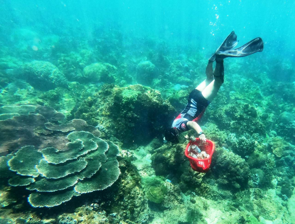 実際、ダナン市では、多くの青年グループや、プロ潜水グループがチュンさんの行動をお手本にし、チュンさんと一緒に、ソンチャ半島周辺の海底にごみ収集に参加しています。ダナン市水泳センターのメンバーは次のように述べています。