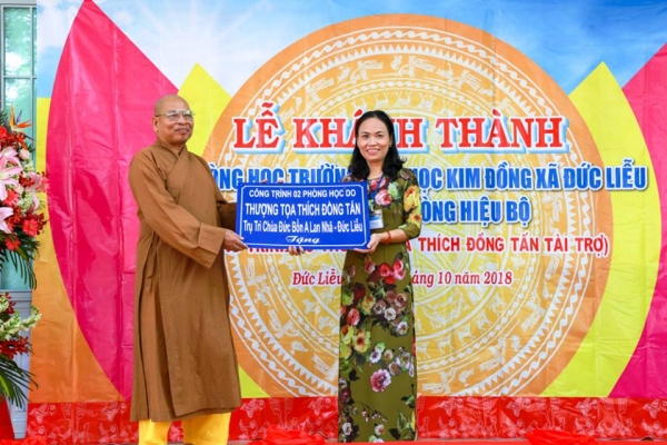 南部ビンフォック(Bình Phước)省ブダン(Bù Đăng)県にあるドック・ボン・アラン・ニャ(Đức Bổn Alan Nhã)寺の住職ティック・ドン・タン上座は、慈悲喜捨という仏教教理に沿って、常に、恵まれない人々を支援する慈善活動を修行者の任務として見なしています。ティック・ドン・タン上座は国内各地の仏教徒の慈善の心とブダン県に住む貧しい子どもを結び付ける架け橋としての存在となっています。