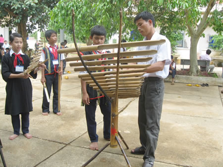 フォン教師は民族寄宿学校内のスタッフとともに、シンバルとドラの演奏の他、織り物技術、民謡、童謡も教えています。1994年に、各民族の全国児童歌舞コンクールで、同校の文芸クラブがフォン教師の監督による童謡、踊り、ドラとシンバルの演奏を披露し、金メダルを獲得しました。どうぞその音楽をお聴きください。