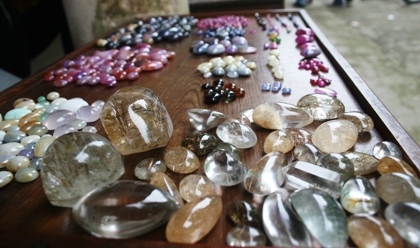 ルックイェン県には様々な種類の宝石に恵まれています。その理由で、ルックイェン県イェンテ町には特別な市場があります。これは宝石市場です。この市場には20の店舗が並べられ、磨かれた石やまったく加工されていない宝石など様々な宝石が売られ、その価格は十万ドンから1億ドンまでと多岐にわたっています。中でも最も高価なものは赤いルビーです。この市場は朝7時から夜10時まで売買で賑わっています。また、宝石でできた絵を販売する店もお客で賑わっています。ハノイからのお客さんレ・グェン・ドゥク( Le Nguyen Duc) さんは次のように語りました。