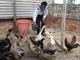 「私たちは鶏とアヒルの飼育の技術を導入しています。おかげで、この島には鶏とアヒルがぐんぐん成長し、食肉の需要に応えています」