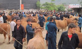 毎週日曜日、早朝から売り手と買い手が市場に出かけて行きます。少数民族の人々にとって、牛は大切な資産ですから、誰もが売り買いが順調に行われることを望んでいます。メオバック町に住むバン・ミ・ジン ( Vang Mi Dinh) さんは次のように語りました。