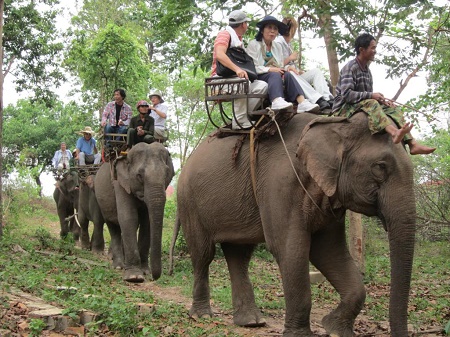 その他、ヨクドン国立公園には他の特別な観光ツアーもあります。これは象に乗って、この国立公園を見学するということです。ハノイからの観光客グェン・トゥ・ハ( Nguyen Thu Ha) さんは次のように語りました。