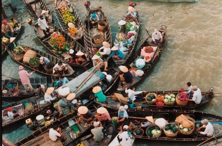 一方、南部メコンデルタ地域に行くと、水上マーケットに行く体験ができます。ベトナムで、水上マーケットを目にするのは南部メコンデルタしかありません。この地域には多くの水上マーケットが開かれています。
