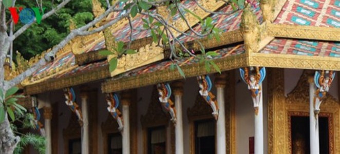 現在、このお寺はクメール寺院の建築様式を持っています。この建築様式はタイなどと同様に、インド文化の影響を受けていますので、中国文化の影響を受けているベトナムの寺院とはだいぶ異なります。この寺院の屋根は二層式で、上には多くの小さい塔があります。