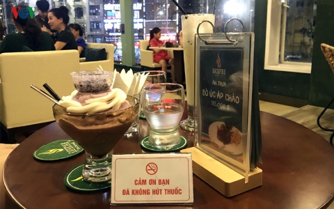 緑豊かで、広い空間がある他、特にタバコの煙がないこの店は多くの来客に深い印象を与えています。それぞれの机には「喫煙しないでありがとう」という小さなプレートが置かれています。そして、この店は喫煙者向けのスペースを設置しています。バックファイアの持ち主のグェン・バオ・トア( Nguyen Bao Thoa)さんは次のように語りました。