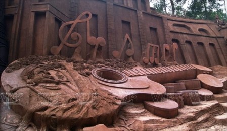 全長1200メートルのこの彫刻芸術群はダラット市のトエンラム湖の湖畔を囲む松林の中に設置されています。野外彫刻の壁には赤土の玄武岩で造られた彫刻作品です。この土の彫刻は開墾以来、現在に至るまでのダラットの発展の道のりを再現しています。この作品の所有者はダラットの古い建築物に興味を持っているチン・バ・ズン( Trinh Ba Dung) さんです。4年にわたる研究の末、ズンさんは赤土の玄武岩が環境にやさしくて、丈夫で、独特な色彩がある彫刻材料になると思いつきました。ズンさんの話です。