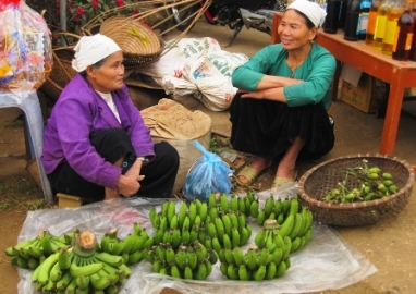 ベトナムでは旧暦の12月23日から、ベトナムの伝統的旧正月テトを準備する雰囲気が活発になってきます。テト間近に、都市部における市場は色とりどりの花や飾り物などで鮮やかになっていますが、農村部の市場はバナナ、ザボン、ゾンの葉など質素なものがいっぱい並べられています。これらのものは大部分、売り手が自分で育てたものです。ハノイ市郊外にあるタインオアイ県の市場の売り手の一人であるグェン・タイン・バン( Nguyen Thanh Van) さんは次のように語りました。