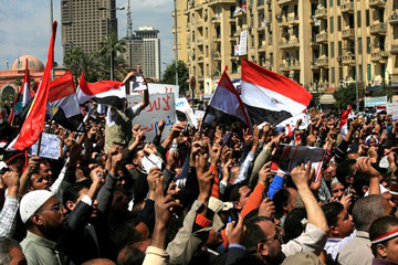 チュニジアの民主化デモは国境を越えて各国に波及しました。エジプトでは,2011年1月25日以降,国内で反体制デモが発生し、首都カイロをはじめ,全国各地でデモに参加する市民の数が増え続け,同年2月11日,ムバラク大統領が国軍最高会議に権限を委譲し,30年に及ぶ長期政権が崩壊し、暫定的な軍政がスタートしました。2011年11月、人民議会選挙、また2012年5月に大統領選挙が実施されましたが、その後も最近に至るまでデモ隊と軍の衝突が続いており、憲法改正を巡る対立が深まっています。これにより、エジプトの外貨準備高が半減し、失業率が増え、予算赤字はおよそ275億ドル増となっています。