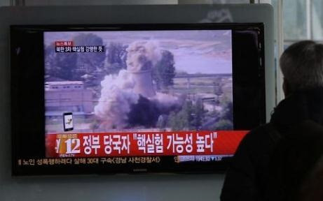 テレビで朝鮮の核実験を見ている韓国人の一人(写真:AP)