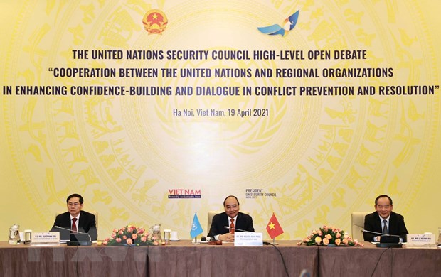 19日、2021年4月の国連安全保障理事会議長国を務めているベトナムのグエン・スアン・フック国家主席の主宰の下、衝突防止のための信頼醸成と対話促進を目指す国連と地域の諸組織との協力強化に関する国連安全保障理事会の一般討論会が開催されました。討論会で演説を行ったフック主席は、国際関係における信頼醸成の重要性を強調するとともに、「ベトナムは世界の恒久平和のために取り組む積極的なパートナーである」と明らかにしました。