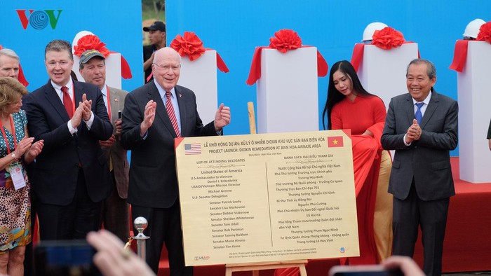 4月20日、ビエンホア空港でのダイオキシン消毒プロジェクトの発動式典が行われました。式典には、パトリック・リーヒ上院議員をはじめ、ほかの8人の上院議員も出席しました。彼らは長年、アメリカの関連各機関にこのプロジェクトの承認を働きかけていました。ベトナム国防省のグエン・チ・ビン次官は次のように語りました。
