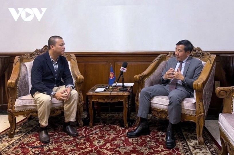 VOVのインタビューに応えているドゥアンチャク大使 |