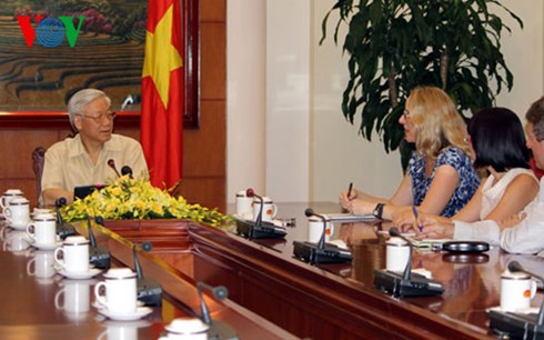 チョン書記長は、インタビューで人権問題に関するアメリカの記者団の質問に答えました。ドイモイ(刷新)事業が実施されて以来30年、ベトナム国民の権利擁護事業が多くの成果を収めていると強調しました。国民の権利は憲法を初めとする法律や政策などできちんと規定されており、実際に擁護されているとしています。ベトナムとアメリカの間には、人権に関して相反する見解があると認めましたが、率直かつ建設的な対話で、その違いを両国関係を妨げないように抑制する必要があるとの考えを示しました。