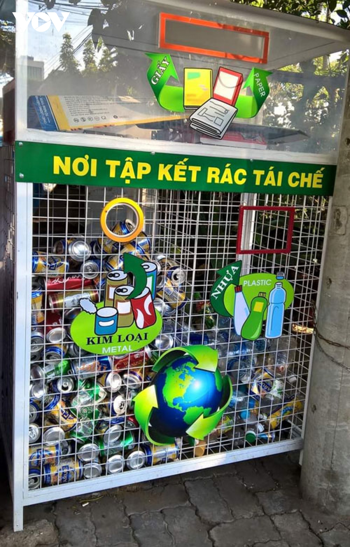 毎週の日曜日の朝になると、ソンチャ区トクアン居住地に住んでいるそれぞれの家庭は、家の外に、プラスチックのペットボトル、空き缶、くず紙が入るゴミ箱籠を置きます。そして、同居住地の女性司会の会員らは、それらのゴミの収集に行きます。このようなゴミの一部を販売したお金で、困難な状態にある女性や、貧困な状況を乗り越えて、立派な成績を収めた生徒を助けます。また、リサイクルゴミからペンケースができます。このリサイクルゴミの収集活動は、1年前の去年から展開されましたが良い効果をもたらしています。トクアン居住地女性司会のファン・ティ・ホア会長は次のように明らかにしました。
