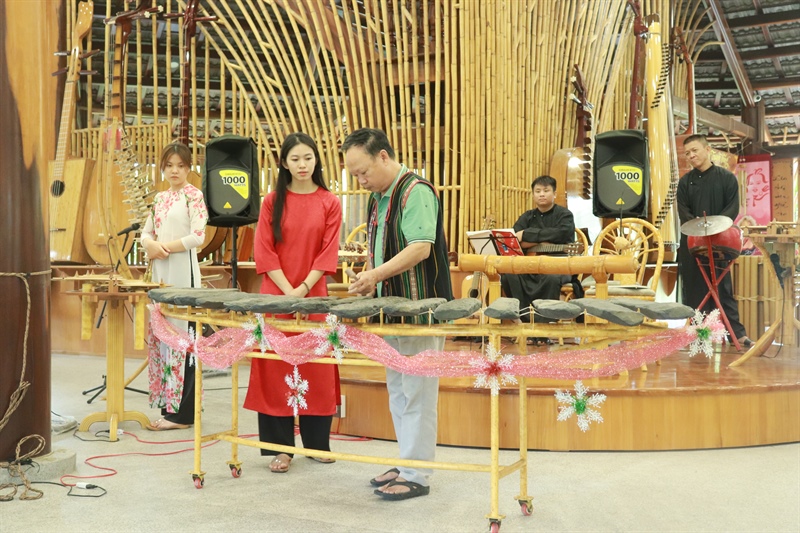 観光客に石で作られた楽器を紹介する(写真: baovanhoa.vn) |