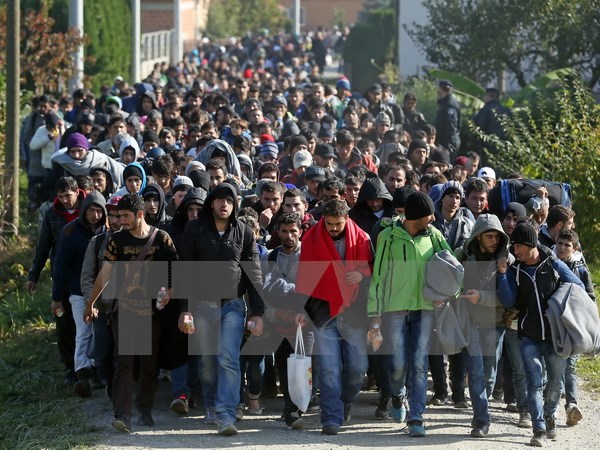 クロアチア・スロベニア国境での難民たち(写真:VNA)