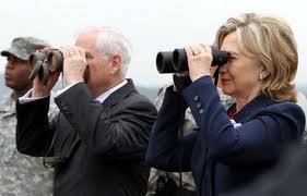 DMZを視察中のクリントン米国務長官