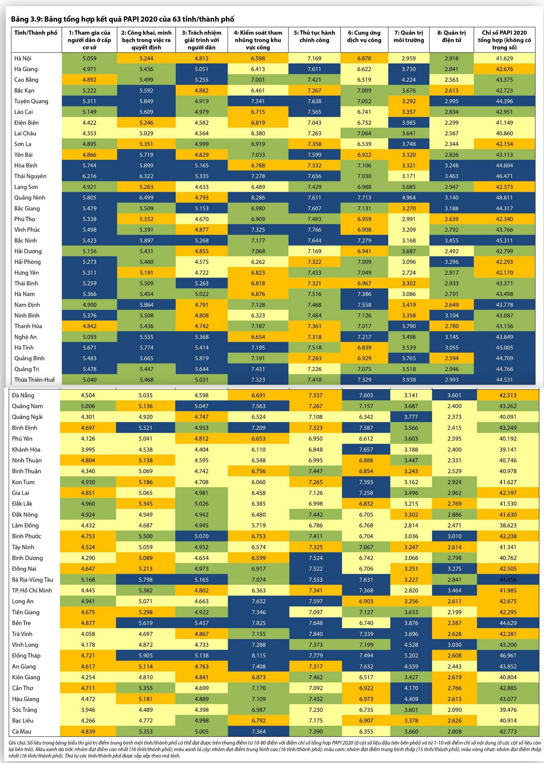 PAPI 2020年版は、ベトナム国内63の地方に住む1万4700人の地元住民を対象に行なわれ、国民の参加度合いや、公開性・透明性、国民に対する説明責任、公共部門での汚職取り締まり、行政手続き、公共サービスの提供、環境管理、電子管理という8つの指数から構成されています。その中で、公共部門での汚職防止対策は目覚ましい成果を収めていますが、ベトナムの全党、全国民の努力から見れば、これは当然のことです。