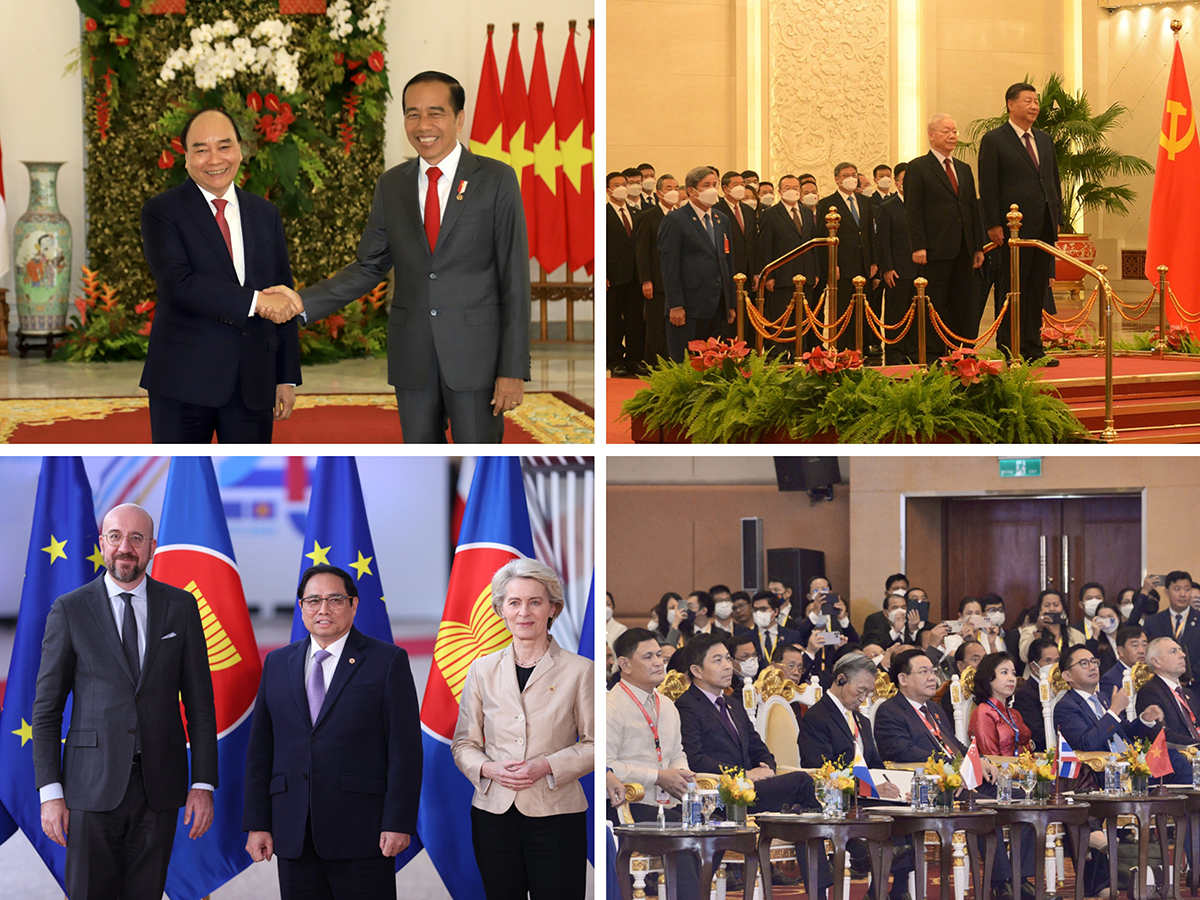ベトナム共産党のグエン・フー・チョン書記長による2022年10月30日~11月1日の中国公式訪問は重要な出来事です。同訪問は包括的な成果を収め、ベトナムと中国との関係強化に寄与して、また、グエン・スアン・フック国家主席の韓国、インドネシアへの国賓訪問のほか、フアム・ミン・チン首相はアメリカ、オランダ、ベルギー、ルクセンブルクを、ブオン・デイン・フエ国会議長はハンガリー、イギリス、オーストラリア、ニュージーランド、フィリピンを訪問しました。そのほか、ベトナムはASEAN=東南アジア諸国連合、AIPA=ASEAN議院会議、APEC=アジア太平洋経済協力、国連など地域と国際のフォーラムに積極的に参加しました。また、2022年、ベトナムはベトナム・ラオス団結友好年、ベトナム・カンボジア団結友好年を成功裏に行いました。これらの活動はベトナムのオープンな政策と、国の発展を促進するため平和で安定した環境を整えるためのベトナムの取り組みを示しています。