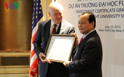 2015年7月10日はベトナムとアメリカの教育協力にとって大きな節目となりました。その日、ニューヨークで、アメリカを訪問中のベトナム共産党のグエン・フー・チョン書記長の立会いのもと、フルブライト・ベトナム大学に投資証明書が渡されたのです。投資総額7千万ドルのこの大学は、ハーバード大学がアメリカ政府の支援によってホーチミン市で設立した非営利の私立大学です。
