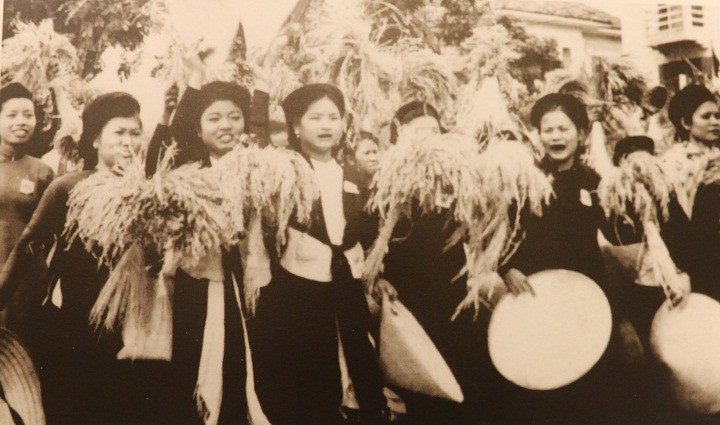 | ハノイ市軍政委員会のブオン・トゥア・ブ委員長を迎える娘たち(写真:TTXVN) |